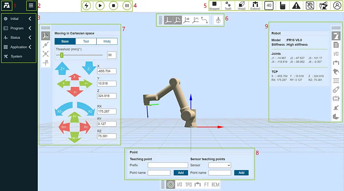 Промышленная панель управленияFAIRINO Teach Pendant подключается к роботизированной системе посредством защищённого интерфейса и полностью интегрируется с платформой управления FAIRINO. Панель обладает всеми функциями полноценной рабочей станции, позволяя оперативно реагировать на изменения в процессе, проводить наладку, отладку и обновление управляющего ПО.