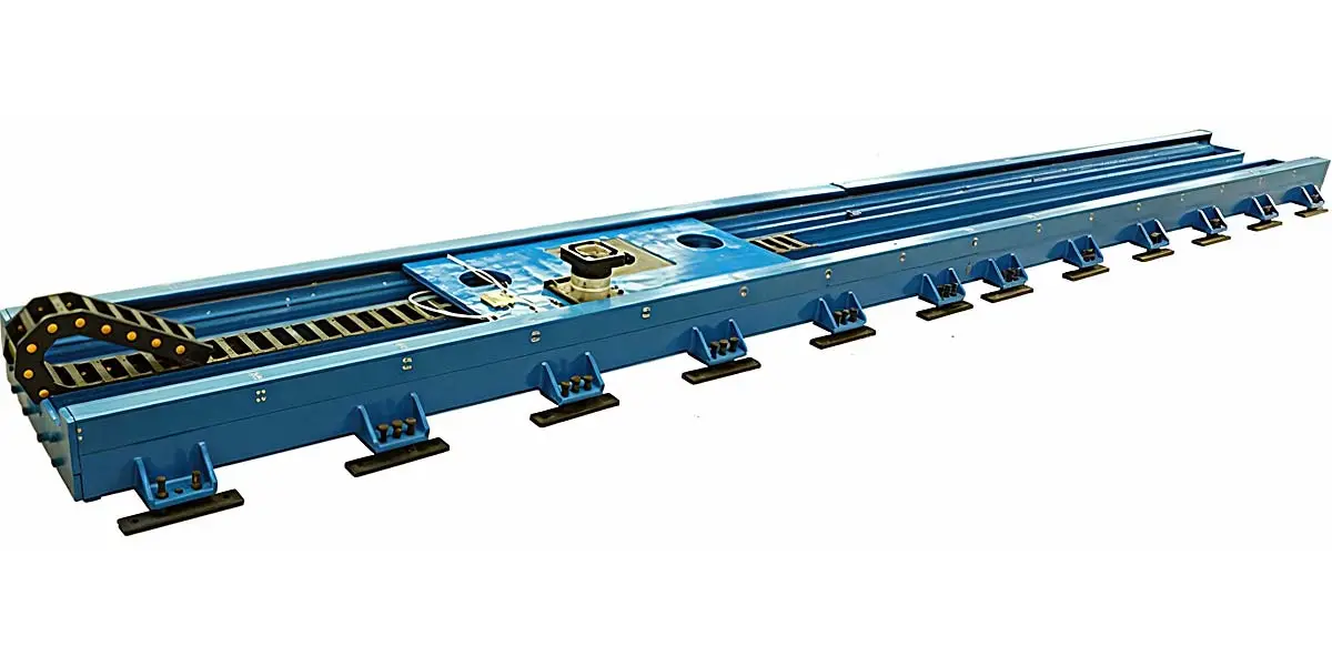 Линейный трек QDZB-6050 представляет собой специализированную стандартную линейную направляющую систему, предназначенную для высокоточного позиционирования и перемещения различных типов оборудования, в том числе сварочных манипуляторов и автоматизированных роботов. Конструкция направляющей выполнена из прочной стальной балки, усиленной ребрами жесткости для обеспечения стабильности и долговечности при интенсивной эксплуатации.