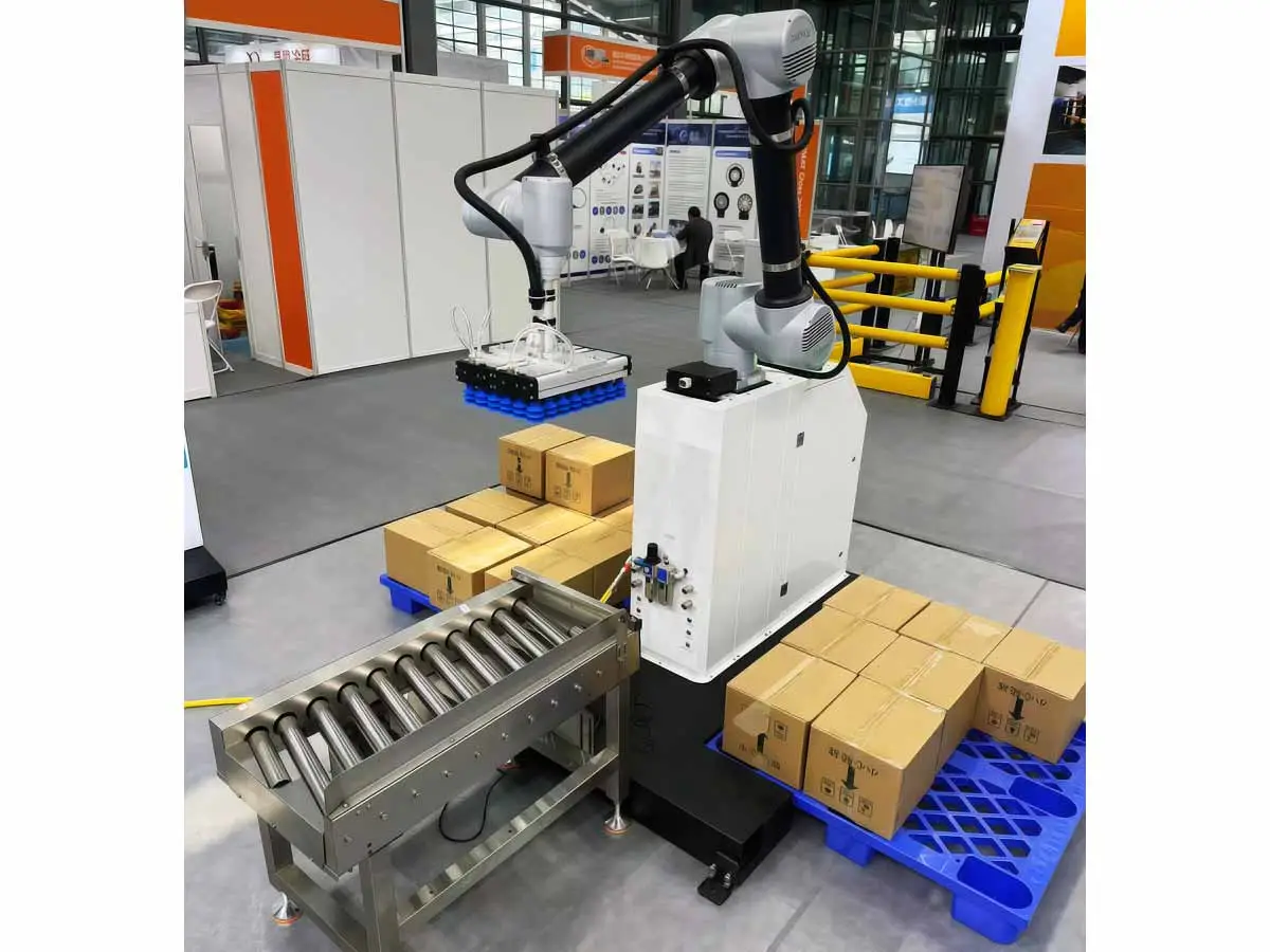 Коллаборативный робот-паллетайзер WSC-MD40 представляет собой передовую автоматизированную систему, предназначенную для укладки упаковок, коробок и других единиц продукции на паллеты с высокой точностью и скоростью. Это интеллектуальное оборудование сочетает в себе современные достижения в области мехатроники и промышленной автоматизации, обеспечивая максимальную производительность при минимальных затратах труда и пространства.