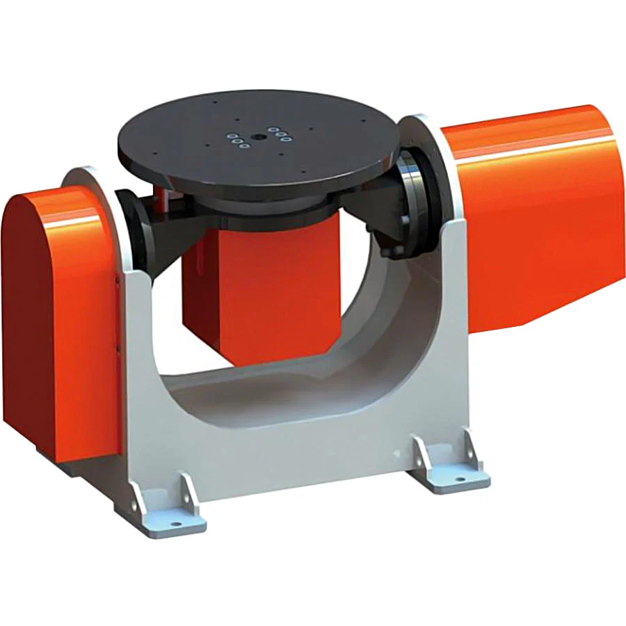 Основу сварочного позиционера составляет прочная металлоконструкция в виде U-образной рамы, на которую установлены два сервоуправляемых привода, обеспечивающие независимое вращение и наклон монтажной платформы. Такая схема позволяет оператору или автоматизированной системе точно выставлять заготовку под требуемым углом и в нужной пространственной ориентации.