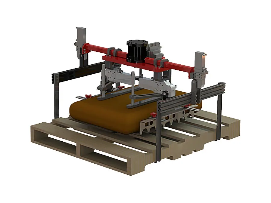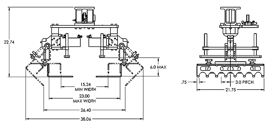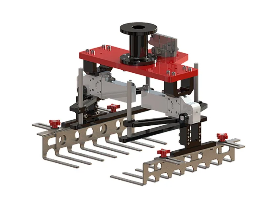 Клещевой захват ЕКОНО 75 поставляется с пневматическими распределителями и креплением, настроенным под вашего робота. Дополнительно доступна опция захвата поддонов.