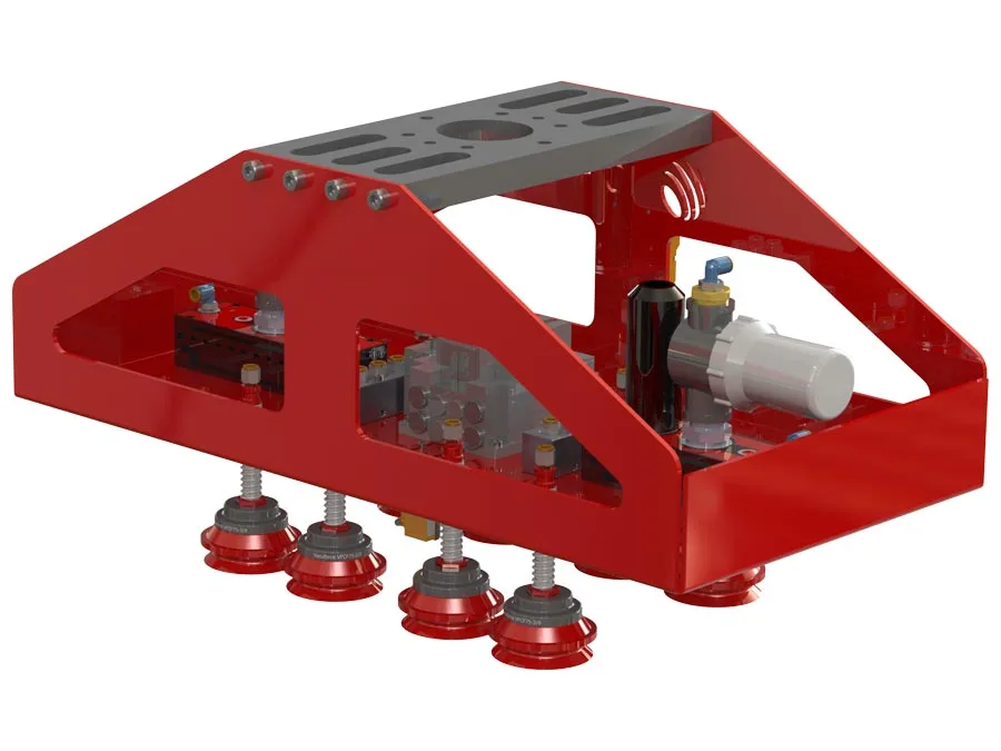 - Восемь вакуумных присосок с компенсаторами уровня обеспечивают надежный захват объектов с различной поверхностью и формой, компенсируя возможные отклонения в высоте.
