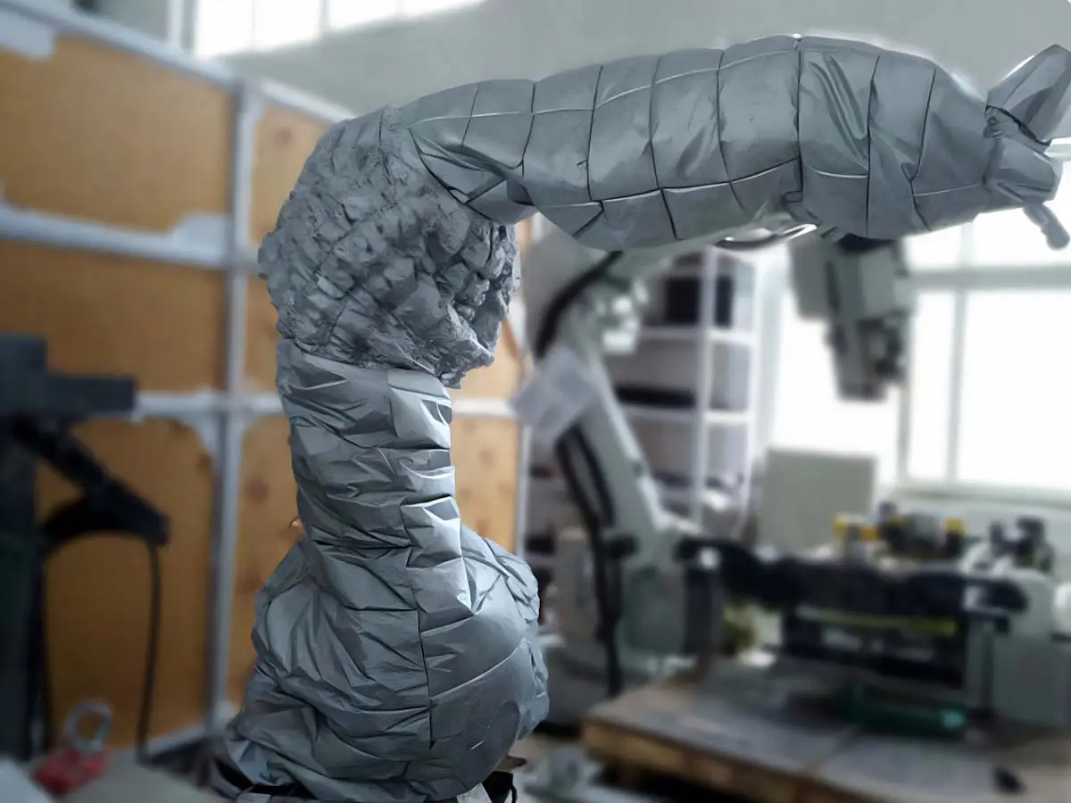 Благодаря индивидуальной форме, чехол плотно охватывает все сочленения и подвижные элементы манипулятора, обеспечивая свободу движения, не нарушая кинематику и точность позиционирования. Присутствуют фиксирующие резинки и застёжки для быстрой установки и демонтажа, что важно при техническом обслуживании.