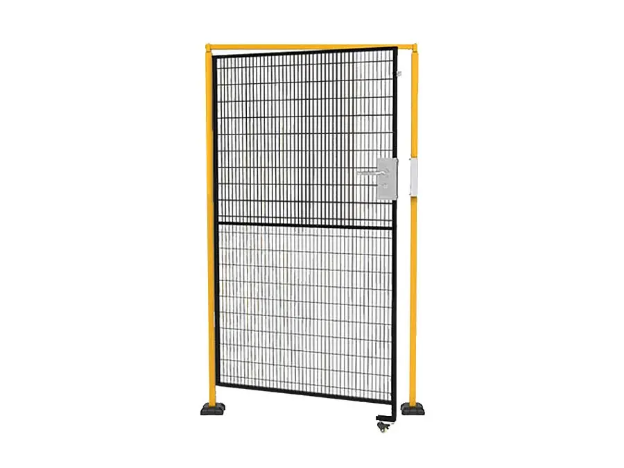 При необходимости, в конструкцию могут быть добавлены датчики открытия/закрытия, электронные замки, световые и звуковые индикаторы для повышения уровня безопасности. Дверь является частью модульной системы защитных ограждений и легко сочетается с другими секциями.