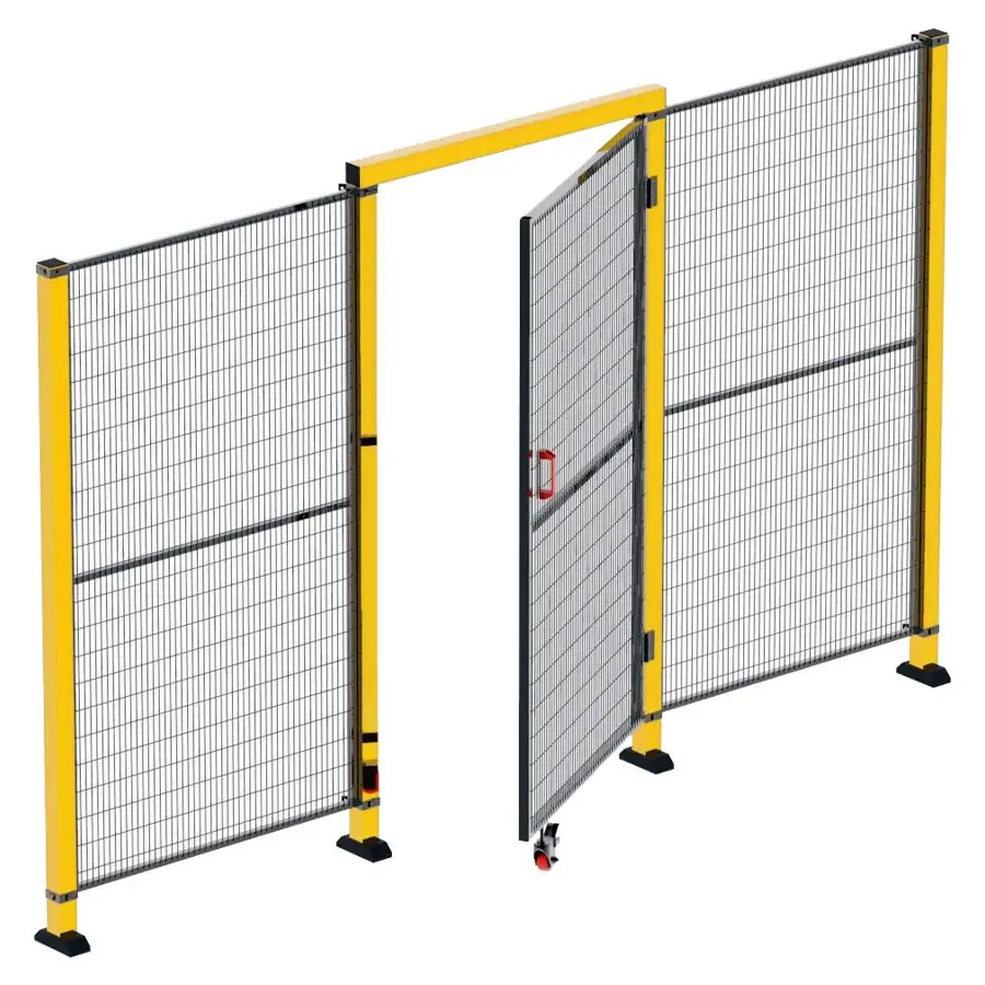Одинарная распашная дверь представляет собой элемент защитного ограждения, предназначенный для организации контролируемого доступа в рабочие зоны, оснащённые роботизированными системами, манипуляторами или автоматизированными станциями. Она изготовлена из высококачественной углеродистой стали с порошковым покрытием, что обеспечивает прочность, устойчивость к коррозии и длительный срок службы.